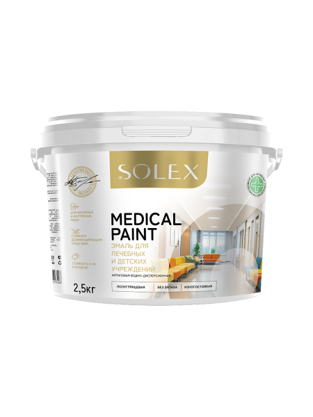 Рекомендована для окраски помещений в лечебно-профилактических и детских учреждениях, особенно для поверхностей подвергающихся интенсивному мытью, в том числе для окраски дверей и оконных рам. Покрытие устойчиво к воздействию рабочих растворов дезинфицирующих средств, в т.ч. на основе активного хлора, активного кислорода, ЧАС, альдегидов, полигуанидов и т.д.