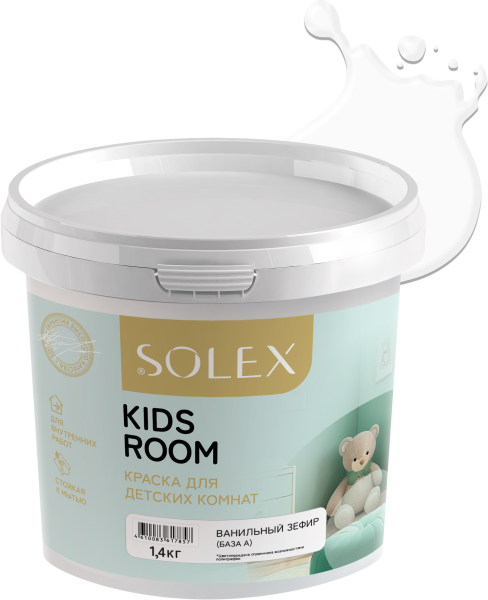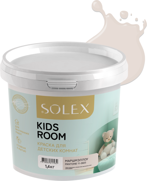 В ассортименте KIDS ROOM 5 цветов: Ванильный зефир (база А), Маршмэллоу (Pantone 11-0603), Мятный леденец (Pantone 12-6208), Пломбир (Pantone 11-0604), Утреннее облако (Pantone 11-4601).
